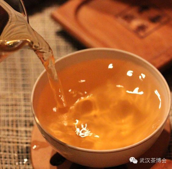 茶汤黄红,香气中生青味减弱、蜜甜香开始明显,口感苦涩较轻,干茶黑绿色,冲泡之后叶底黄色。